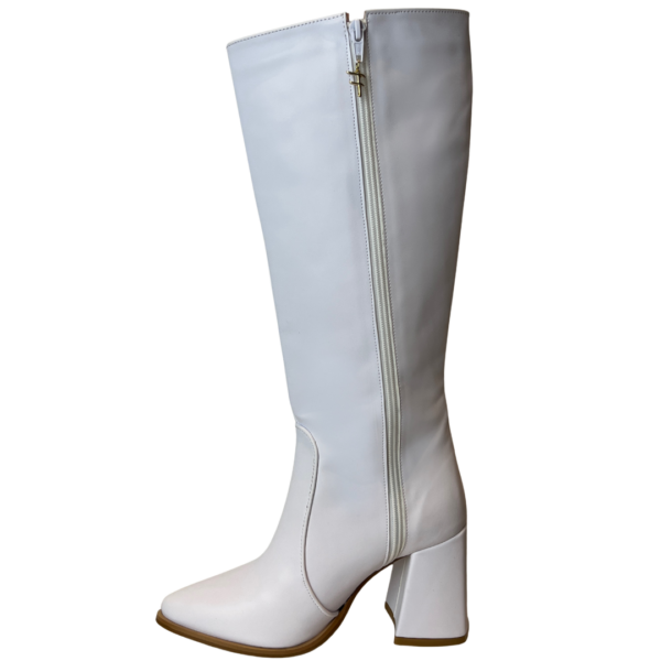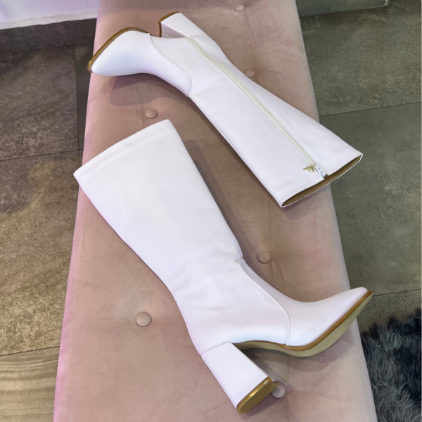 ? Botas blancas altas con zipper lateral, largo de 30cm con tacón de 8.5 cm