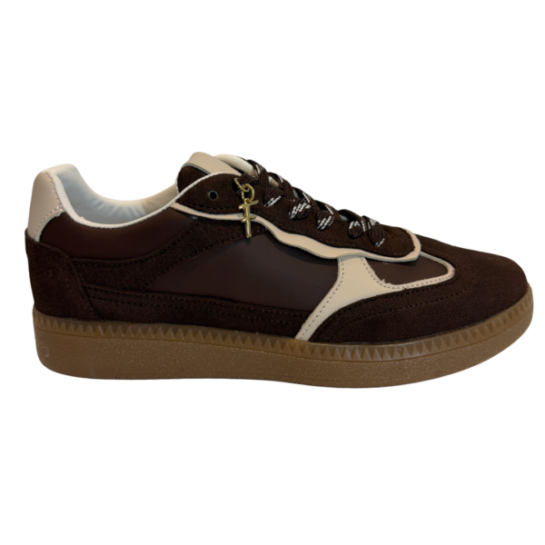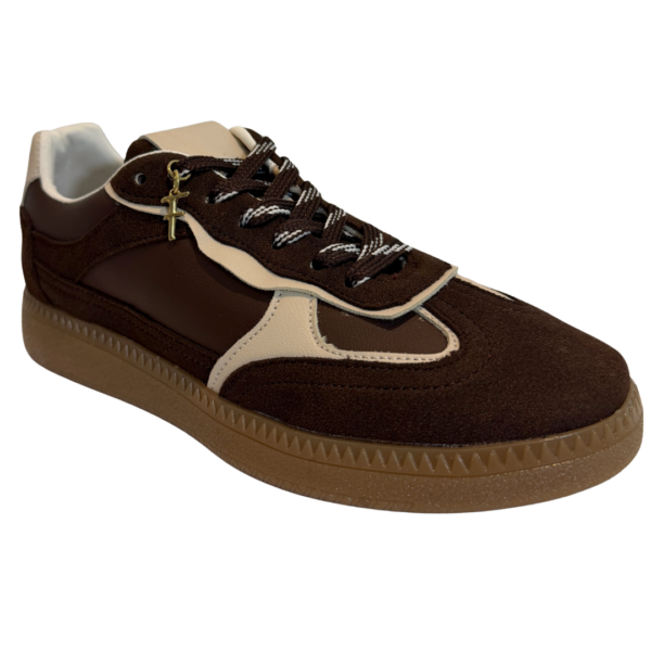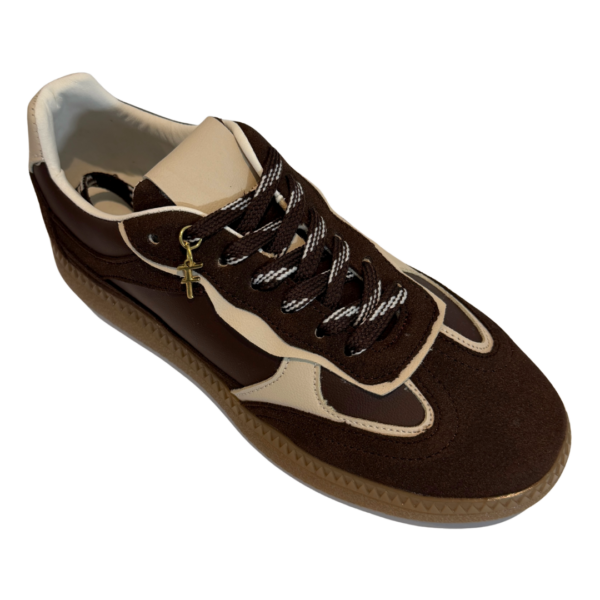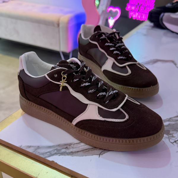 👟 Tenis café con beige y cinta de doble color | Plataforma de 2.5 cm